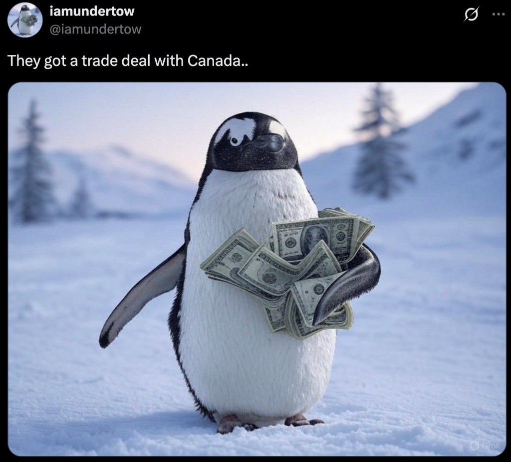 Much of the past week has been spent laughing at penguin memes. Because when the U.S. decides to put tariffs on islands containing nothing but penguins, seagulls and seals, the world will provide penguin memes.
