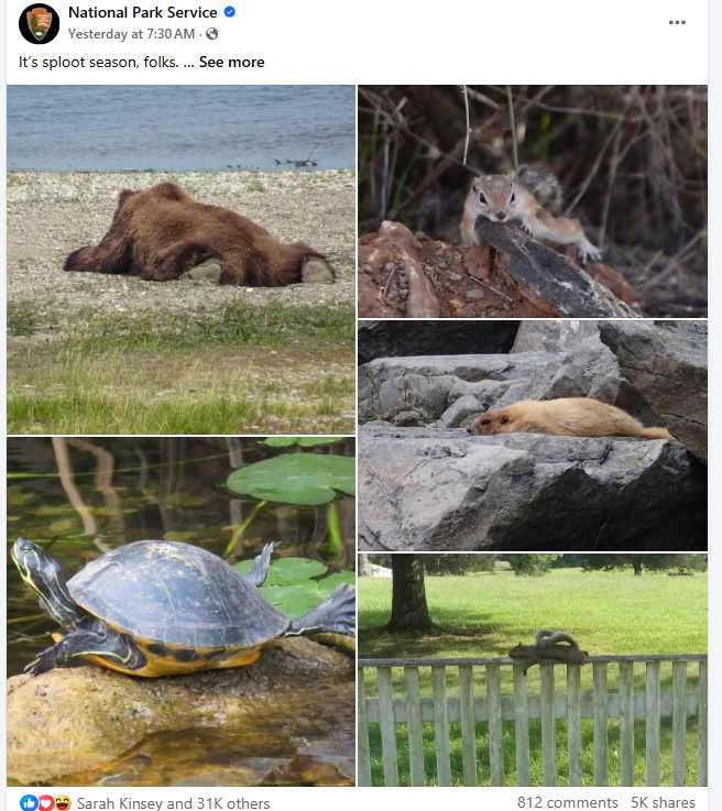 The National Park Service social media account has always been great fun, and a terrific source of sploots. Screenshot from Facebook.