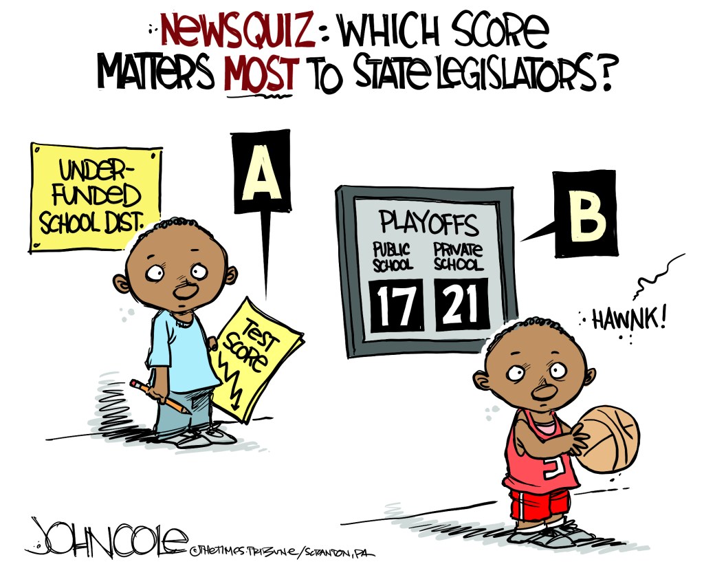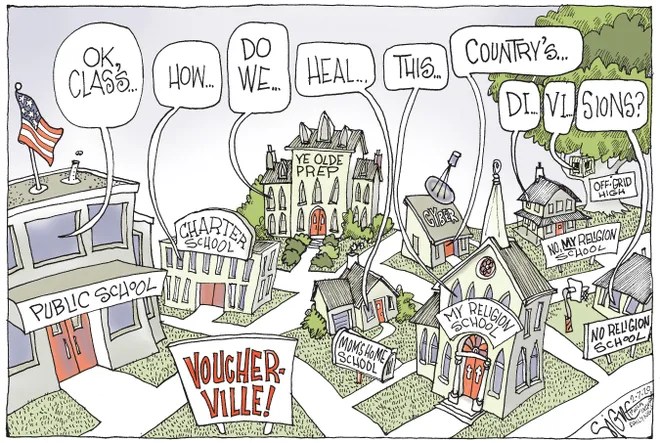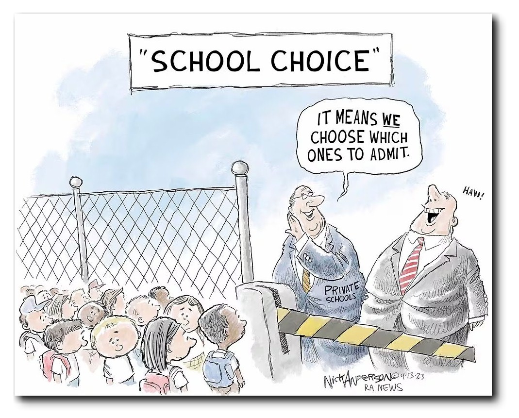 What they mean when they say choice, especially to poor kids. Editorial cartoon by Nick Anderson.