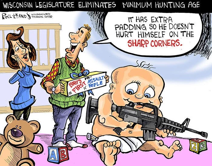 Sure, make it even easier! Why not? What could possibly go wrong? Editorial cartoon by Phil Hands, Wisconsin State Journal.