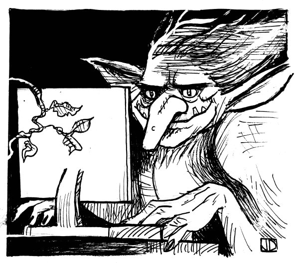 My buddy John makes trolls look more attractive than they are. Illustration by John Deering.