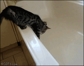 Big water bowl? Yes! Bath? Hell, no … I’m outta here!