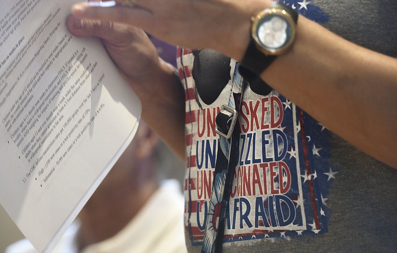 Well, if more of the unvaccinated would wear these shirts, the rest of us would know who to avoid to lessen our covid risk. Image by NWA Democrat-Gazette photographer Charlie Kaijo found on nwaonline.com.