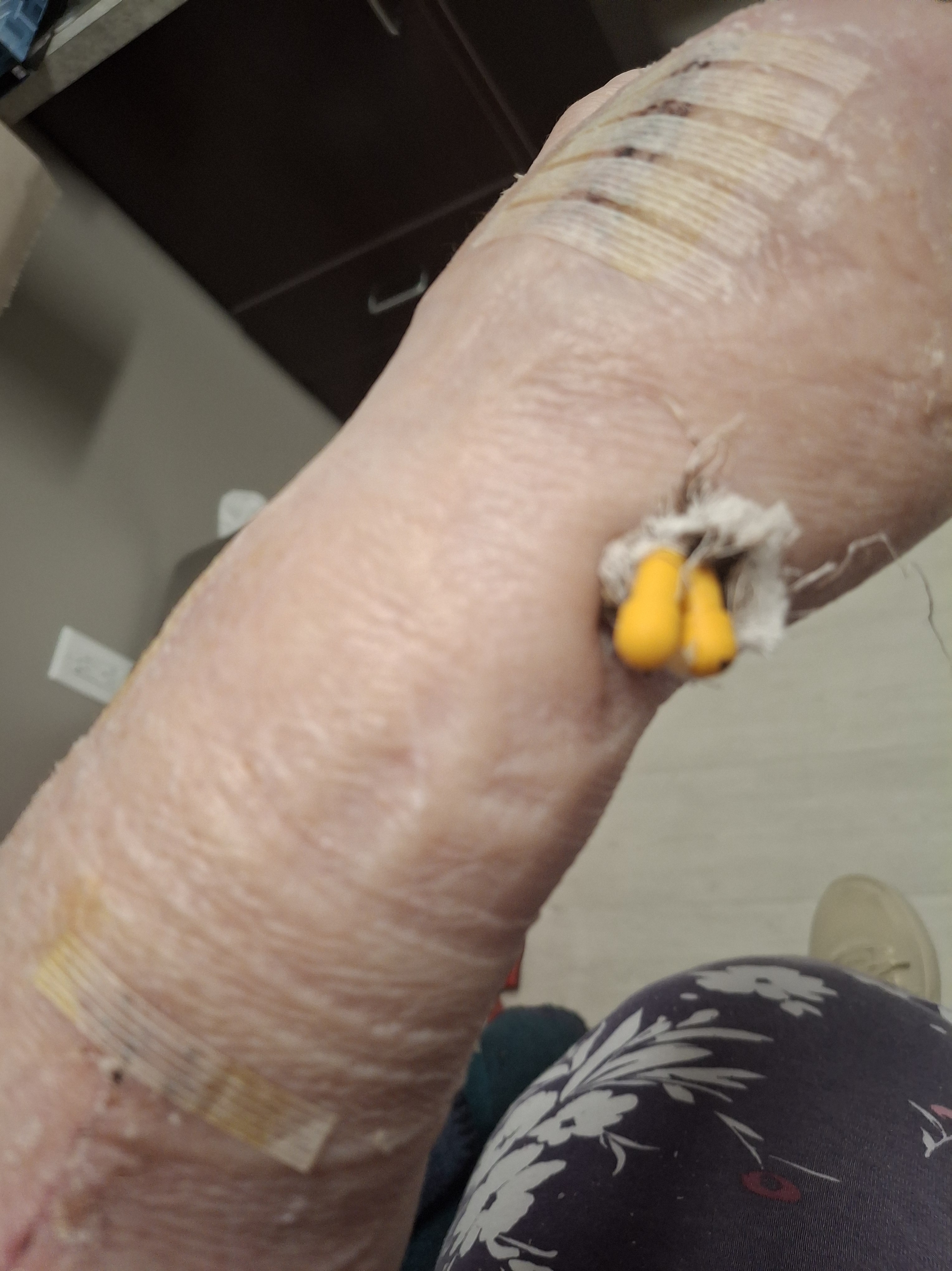 Speaking of cringe, isn’t all the compressed and dead skin lovely? I was glad to bid adieu to those pins, plus the staples on the other side of my wrist that I didn’t even know were there (but boy, did I feel it when they were removed; they’re not meant to stay in for a month). Went home with pain, a Frosty from friend Sarah for taking the pain like a woman, and a spot of blood on my Kiziks from the gusher when the pins were pulled out.