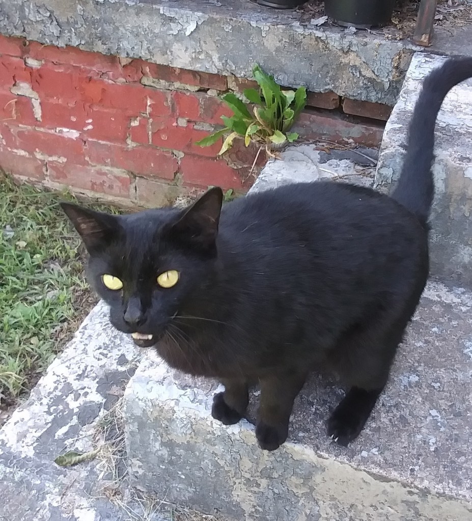 Boo’s semi-feral rather than full feral, and has the cutest little trilling meow. Happy National Feral Cat Day, Boo! Come on over and I’ll break out the Fancy Feast for ya.