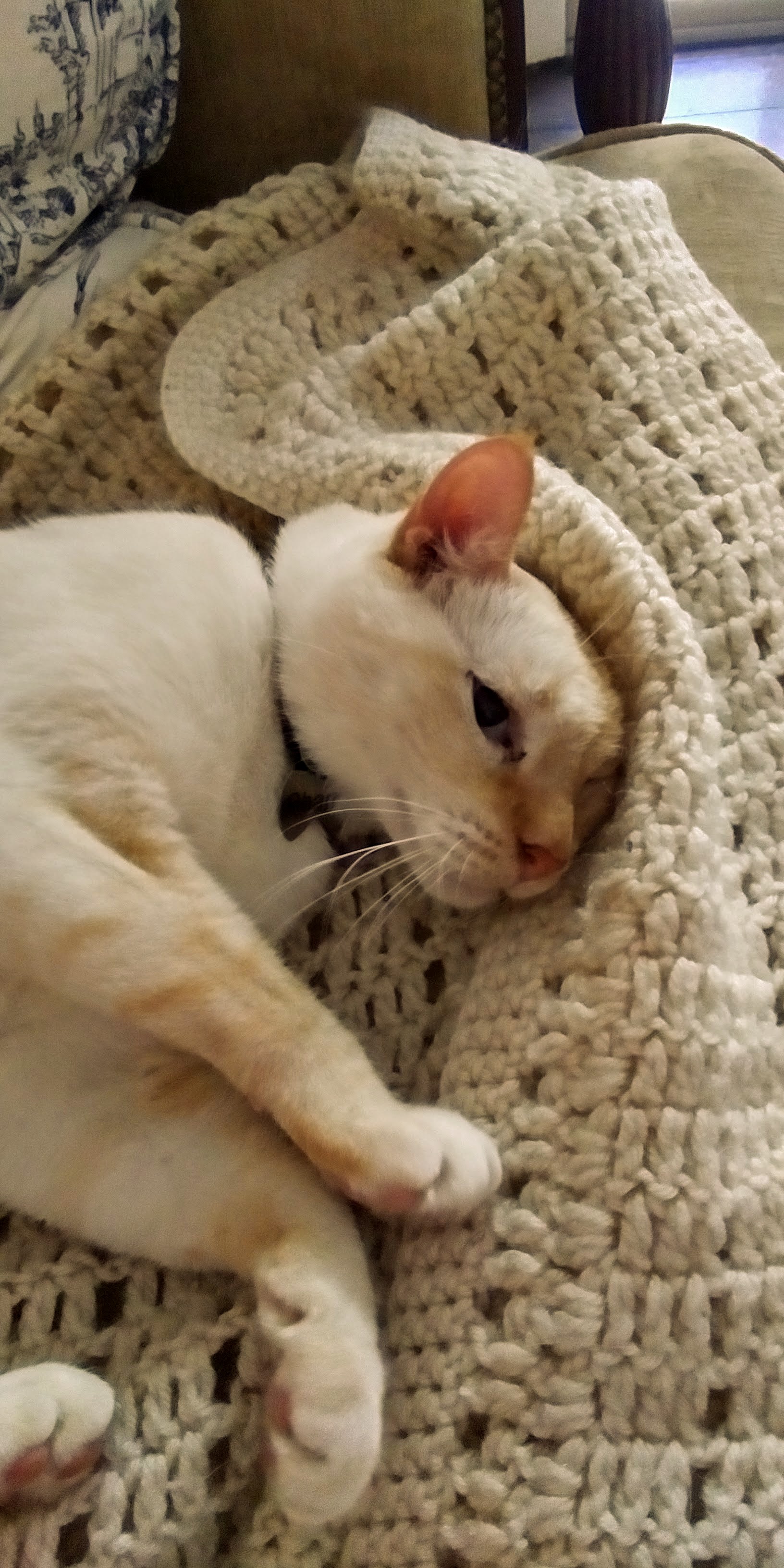 This boy may be the sweetest cat in the world. Charlie is very patient when his Aunt Brenda wants to smooch on him.