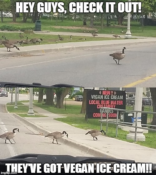 Not so sure about the vegan part, but I’m on board with the ice cream part. Image found on imgflip.