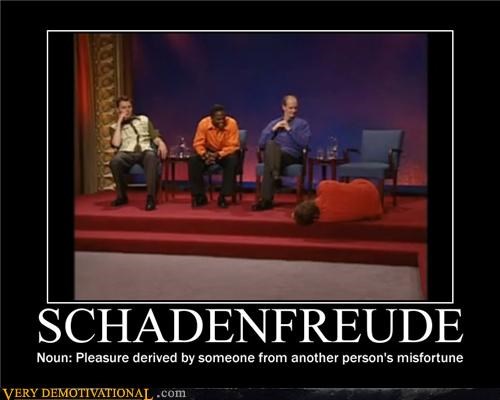 Schadenfreude is the word for that feeling, and is just one of many for which we can thank the German language. Merriam-Webster notes: “Schadenfreude is a combination of the German nouns Schaden, meaning ‘damage’ or ‘harm,’ and Freude, meaning ‘joy.’ So it makes sense that schadenfreude means joy over some harm or misfortune suffered by another.”