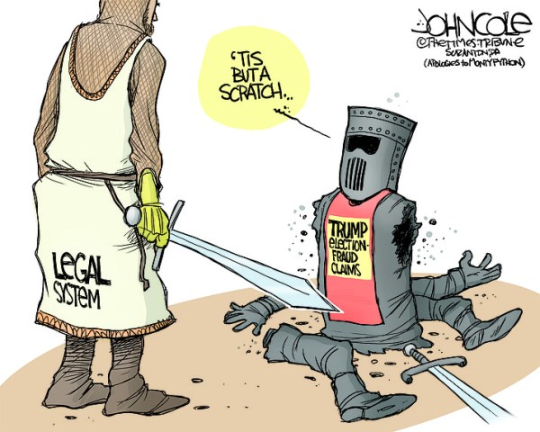Which is why a large segment of our population is under the impression that there was massive fraud in the recent election, despite assurances from people in authority that no evidence of widespread fraud has been found, as well as obvious holes in theories about a stolen election (seriously, if the fix was in, wouldn’t Mitch McConnell and Lindsey Graham have been defeated?).