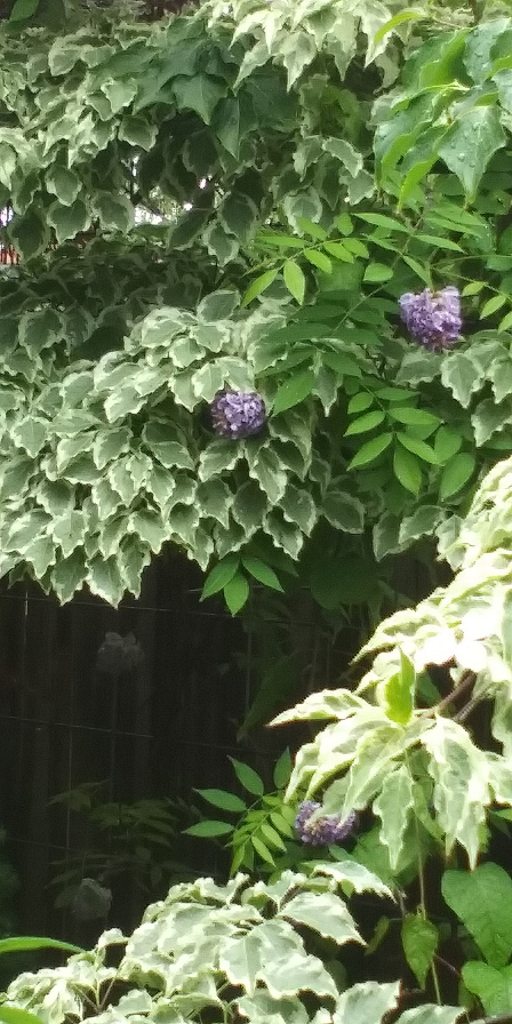 Those purple flowers are America wisteria. It’s less showy than Japanese wisteria, but also much less invasive.