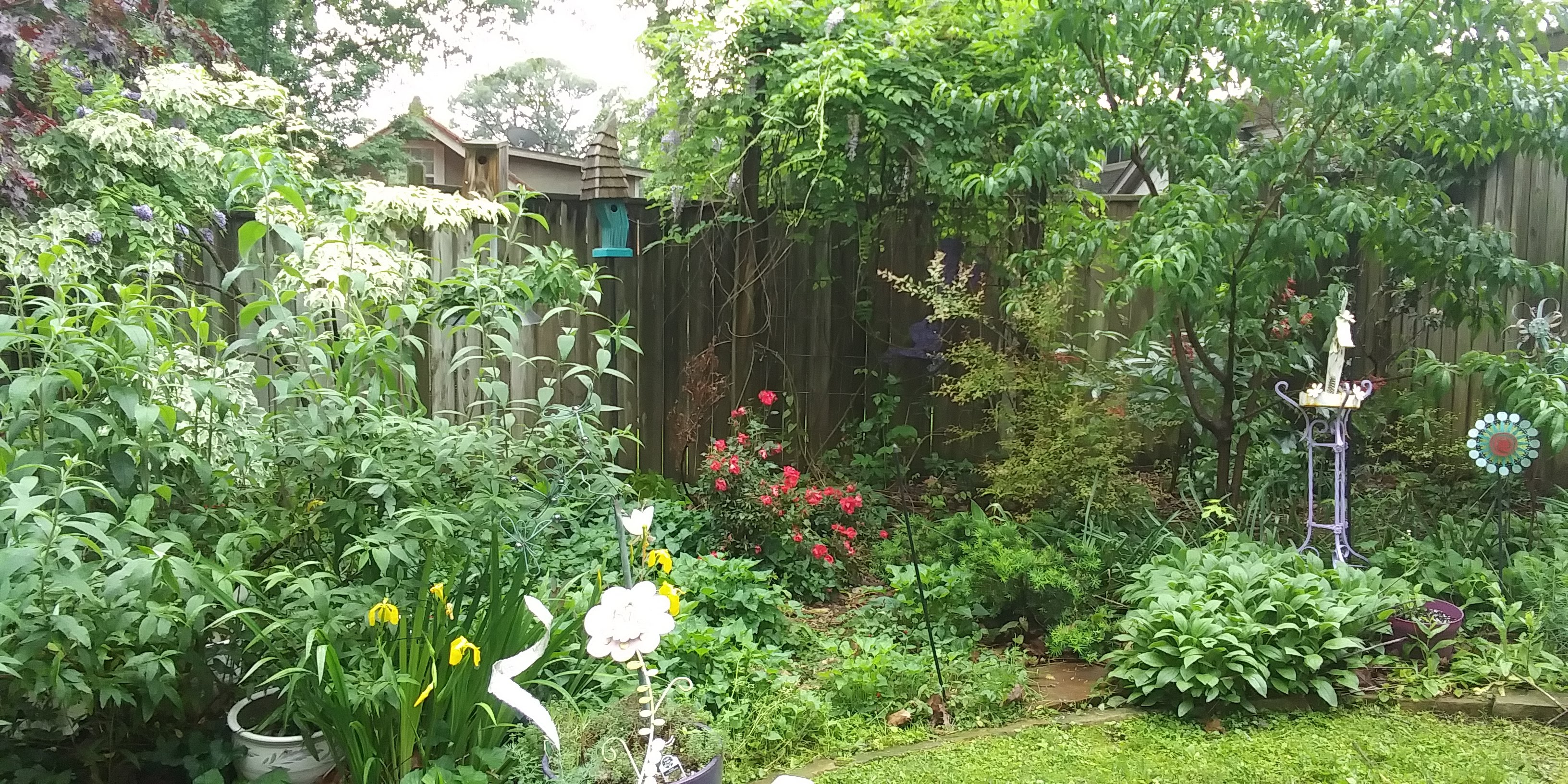 April is National Garden Month, but it’s been so rainy (as April in Arkansas often is) that there hasn’t been much of that happening for me. I did spend some time Saturday picking up plants I ordered from Audubon Delta’s spring native plant sale, and those will be planted sometime in the next couple of weeks in my front yard. Lately, though, I’ve been sitting the house and cat for someone whose garden is a certified wildlife habitat. I’m gaining inspiration here, as well as a new feline friend.