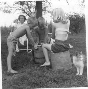 That’s just what we did. If we wanted the homemade stuff, we had to crank it because we didn’t have an electric ice cream maker then. It was usually vanilla because that’s what Daddy liked, but Mama and I managed to sneak in the occasional chocolate.