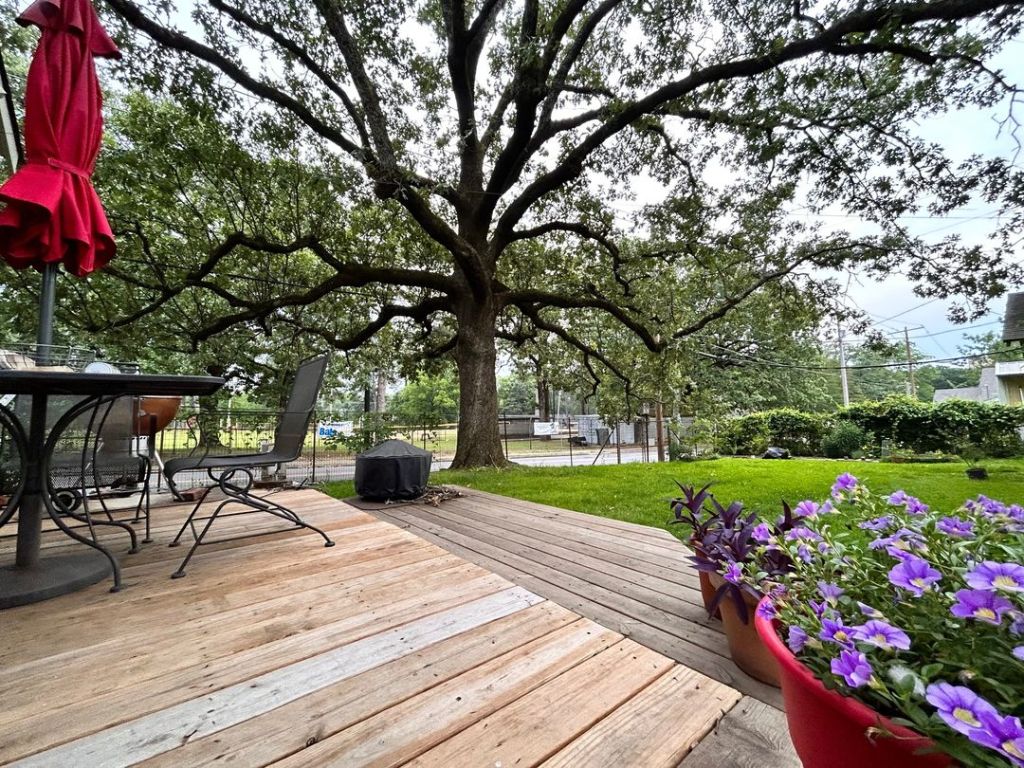 Who wouldn’t love sitting on this deck chatting with friends and eating good food (sometimes chicken or turkey burgers, sometimes chicken drummies, or maybe smoked turkey)? Image by Sophie Mitchell.
