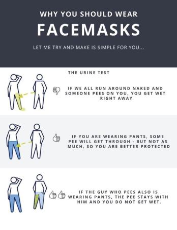 I can’t go today without making another plea for people to wear masks (if they’re able), especially considering the recent increase in covid-19 cases and deaths. To that point, here’s something from my life, especially if the urine/pants analogy last month and repeated above didn’t drive it home for you.