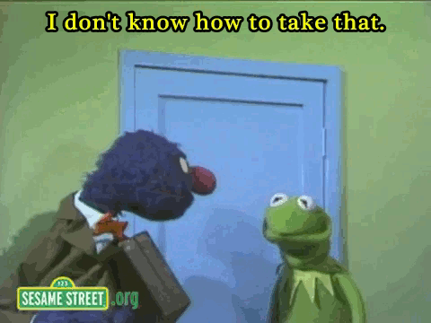 Cue Grover teaching us the difference between “near” and “far.” While you’re at it, play the sketch with the Yip Yip aliens who come upon a telephone. The mooing and the “nope, nope, nope” get me every time. My friend Jennifer and I used to imitate the aliens imitating the phone ringing. We were easily amused at times.