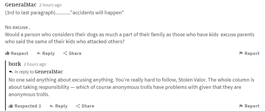 Some of the commenters on the newspaper’s website even pledged recently to be civil. Not that it lasted long, as one of the self-proclaimed saner and more broad-minded of the bunch almost immediately started name-calling everyone he didn’t like. Anonymous trolls will be anonymous trolls. Sigh.