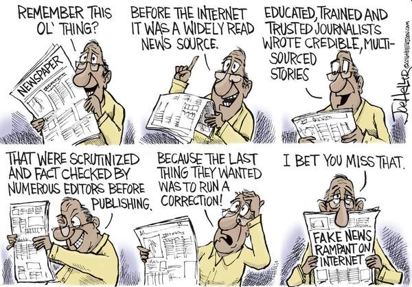 I would be eager to learn what, exactly, they believe the news side of this paper has been doing. I came from the news side, and I don’t recall any of this propagandizing going on. (Dude, you have the burden of proof, so please, bring the receipts.) When reporting reality seems like propaganda, something is seriously wrong with the picture, and a big part of it, I believe, is due to both media illiteracy (being unable to discern the differences between reliable and unreliable news sources) and hyperpartisanship. The two feed off each other, which is an unhealthy situation all around.