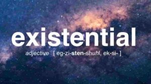 Dictionary.com defines existential as “of or relating to existence” (a sense that entered English in the late 1600s), and “concerned with the nature of human existence as determined by the individual’s freely made choices” (a sense first recorded in the early 1900s).