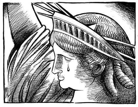 We'll never forget. Editorial cartoon by Mike Lane.