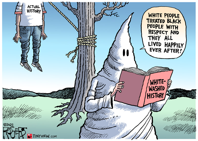 History includes everything, the good, the bad and the ugly. Ignoring the parts we don’t like means we won’t learn anything from it. Editorial cartoon by Rob Rogers, tinyview.com.