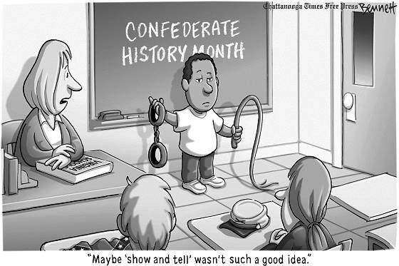 Some people like to gloss over uncomfortable history. Editorial cartoon by Clay Bennett, Chattanooga Times-Free Press.