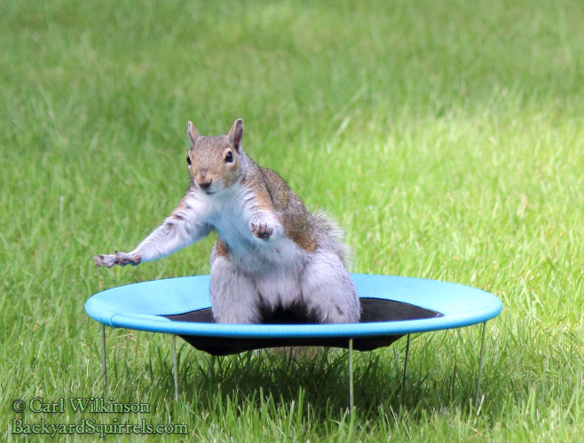 Hold it, people! Settle your butts, I’m tryin’ to talk here! Photo by Carl Wilkinson found on BackyardSquirrels.