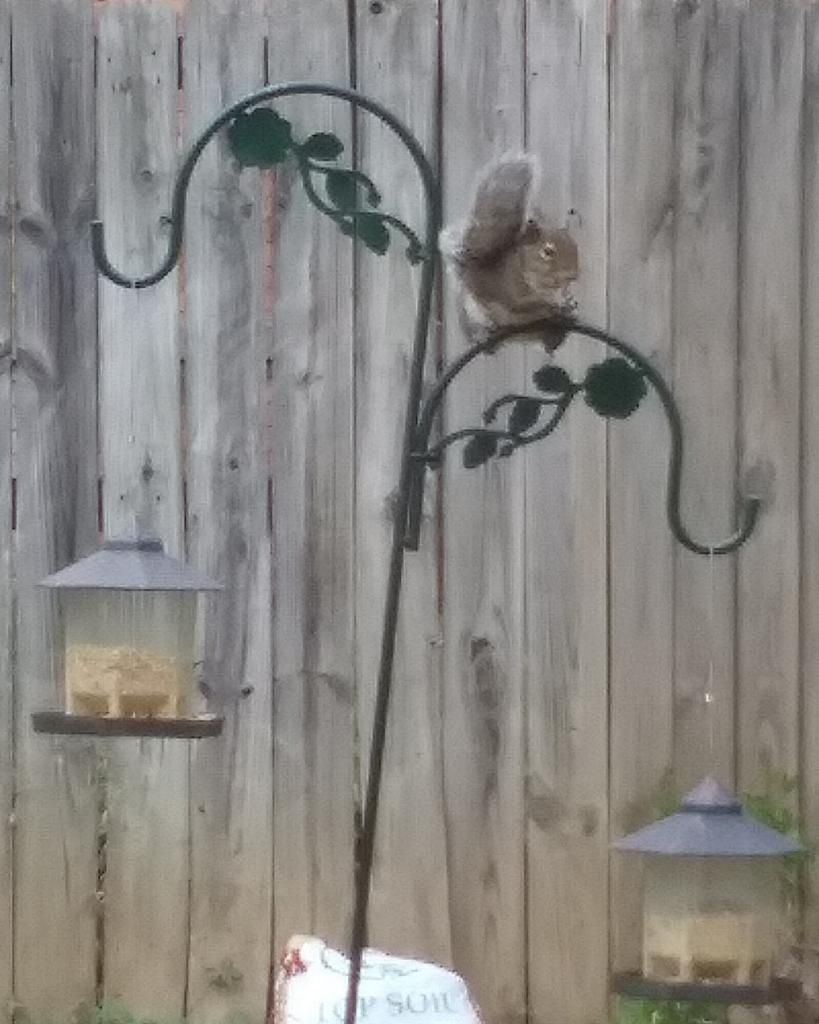 Sometimes they’re annoying, like when they raid the bird feeders or uproot your plants so they can hide their nuts and seeds (that they’ll forget about, which is inadvertently a good thing when they sprout). But they can also be funny and endlessly entertaining. Kevin, Sarah’s backyard squirrel, may be expecting some love today, though …