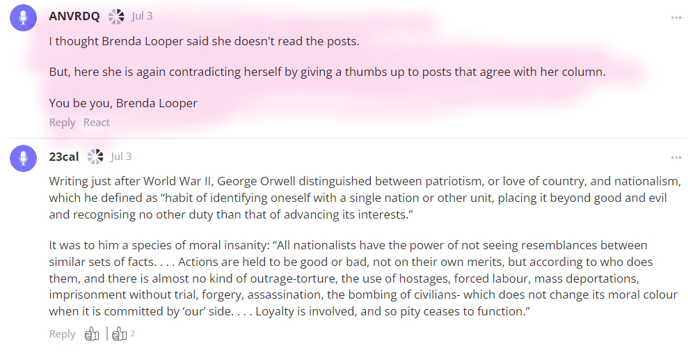 There’s at least one person on the newspaper website right now screaming “Hypocrite!” at his computer, and probably going back yet again to see if I’ve liked a comment by someone he disagrees with, disregarding whether it was because the comment had merit (if I upvote a comment, it does; if I downvote one, it’s because it makes little sense, lacks civility and/or doesn’t address the issue). Then again, context is evil. I mean, it can tell you what was actually meant, and that’s just no fun.