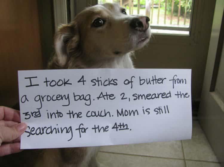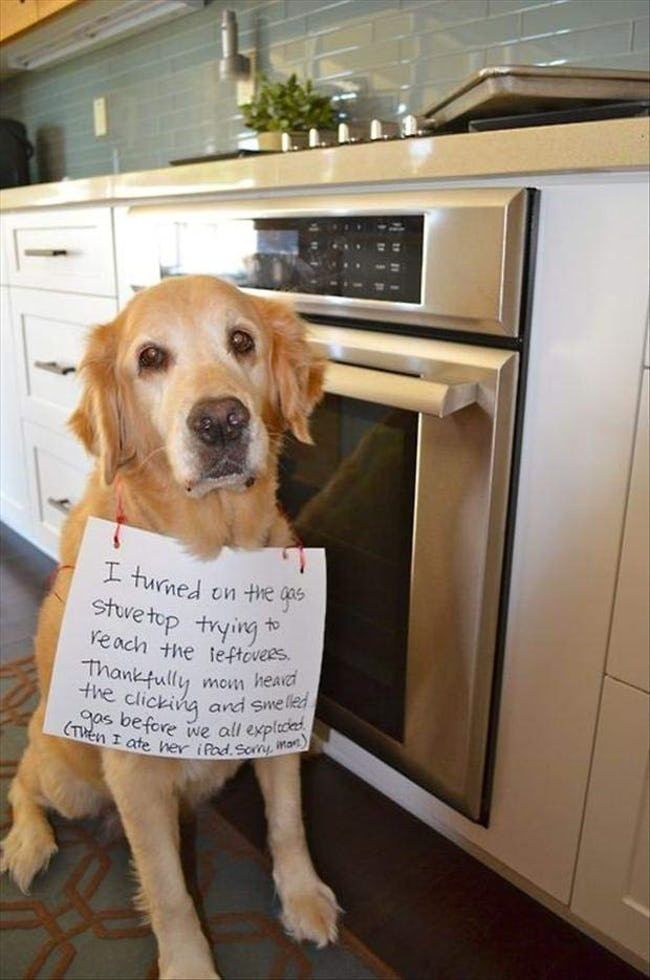 The lesson here is to put your leftovers up as soon as possible. And don’t leave your iPod, AirPods or other small but expensive gadgets where your dog can get to them. Image found on Pinterest.