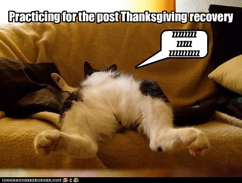 Cats can teach us much. Resting up is a good idea, both pre- and post-Thanksgiving. Image found on cheezburger.