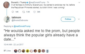 Sorry, you’ll have to put on your Scaramucci (otherwise known as Scarydouchey) mask to get him to believe.