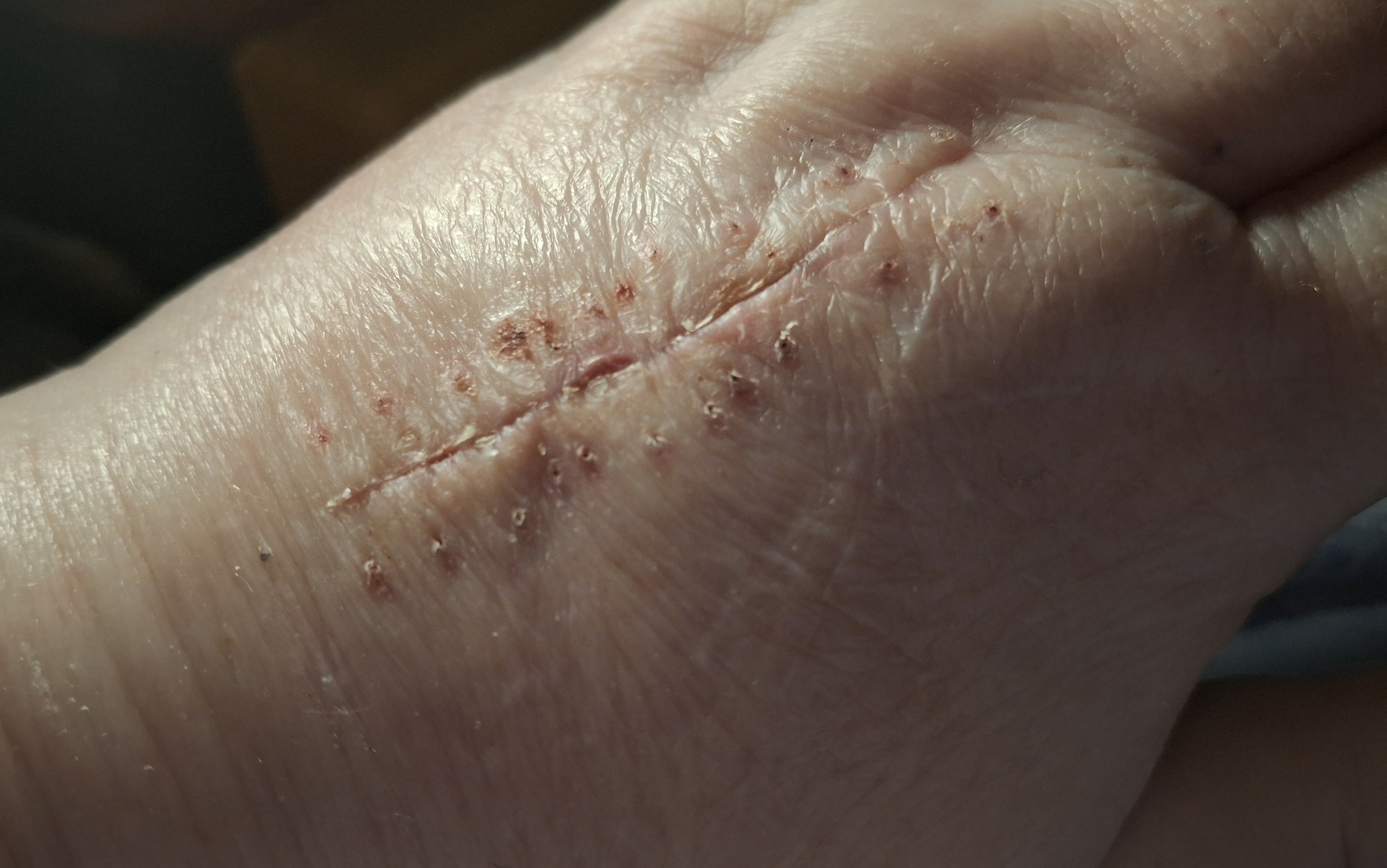It still has a lot of healing to do, but it looks so much better now that there are no staples to snag on anything.